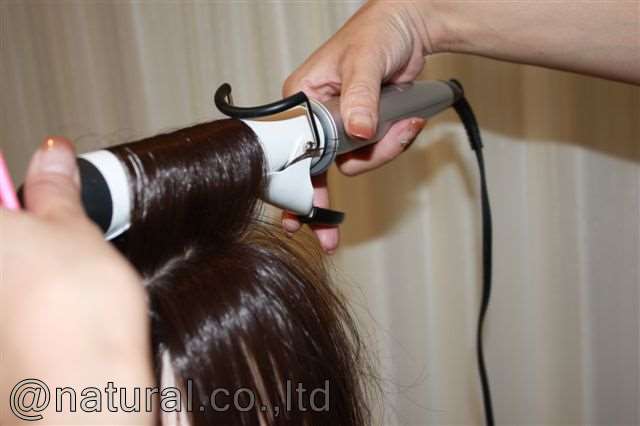 12. くるくるドライヤーやヘアアイロンでカールをつけたり、ストレートにすることもできます。その場合、熱保護用のスタイリング剤を髪につけてからおこなうと、痛みが少なくてすみます。
