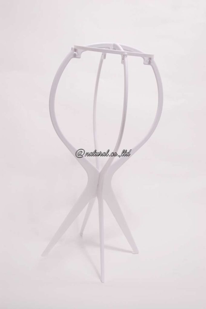 ウィッグは毎日脱いだはウィッグ台にのせて保管しましょう。台の上などにそのまま置くと、次の朝、寝ぐせのように癖がついてスタイリングに時間がかかります。全かつらは下の写真のようなウィッグ台にのせると一番良いです。部分かつらで髪が短い場合は、キッチン用のざるを裏返ししてその上に被せましょう。